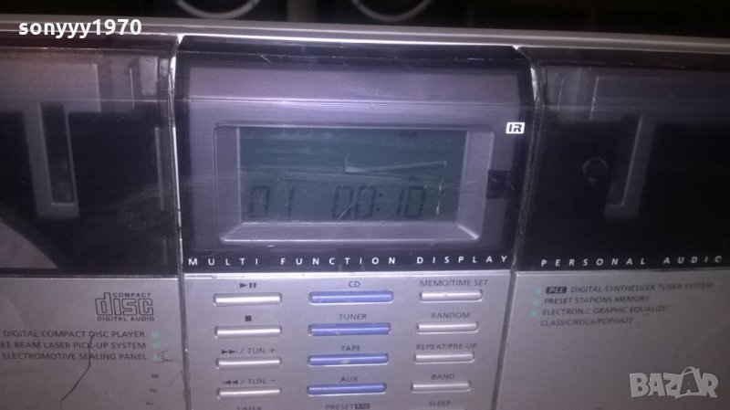 здраво цд здрав дек и тунер-усилвател с изходи за 2 колони-има и вход аукс-и дисплеи с синя подсветка-моторизирано отваряне на диска и касетата-всичко е здраво и работи идеално-от днес 28.02.22г пращаме със спиди или еконт с преглед и тест след превод на капаро за куриерската услуга поради зачестили некоректни потребители-поръчки само в тук в саита! по телефона и със смс не! краини цени! бартери не правиме! всеки ден нови неща-още 2-3 наши обяви тук