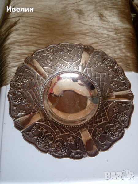посребрена купа,фруктиера в стил арт деко.висока е 9см,диаметър 25см.
