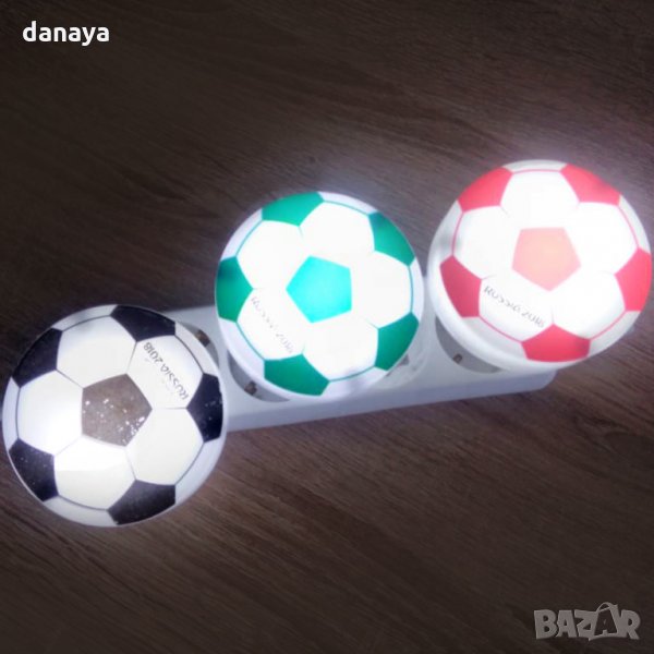 Енергоспестяваща детска нощна лед лампа за стена с копче за включване и изключване. Лед лампа за контакт с форма на футболна топка в три цвята. Симпатична нощна лед лампичка, идеална за всяко детско помещение, коридор или спалня. Специално разработена, за да пести електроенергия.