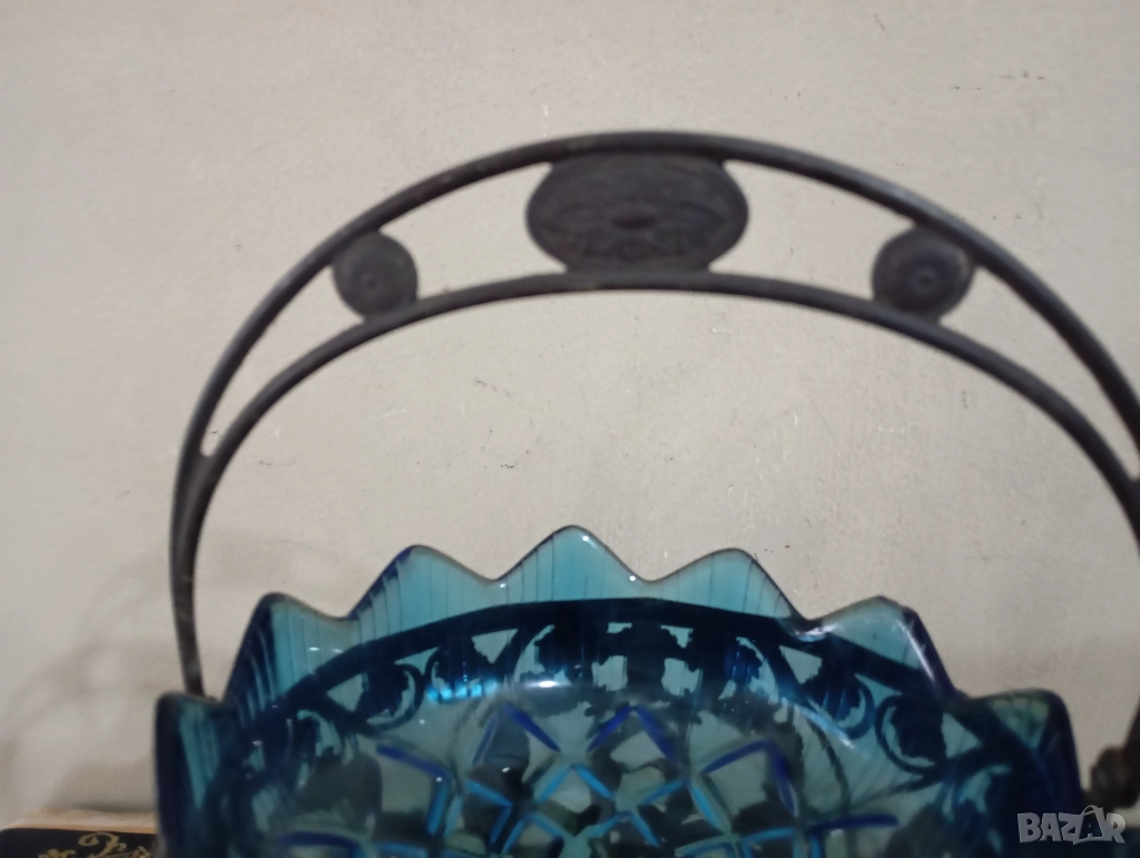 Метален обков.Дръжката е разпоена,може да се залепи,стъклен съд.