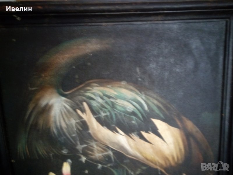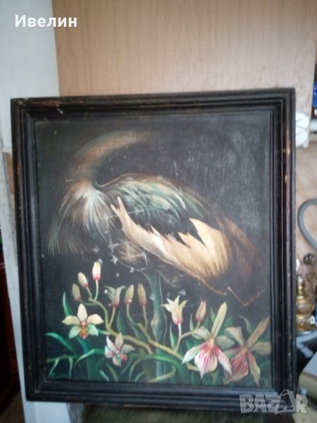 картина-сън.акрилни бои на платно,каширано на шперплат в дървена рамка с размери 63см/74см,вътрешни 54см/64см,подписана,датирана.нуждае се от почистване.