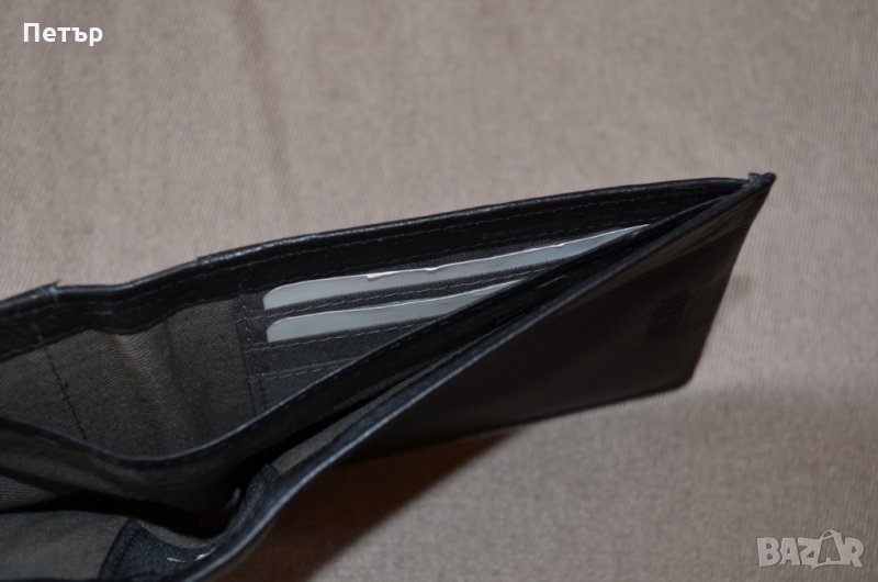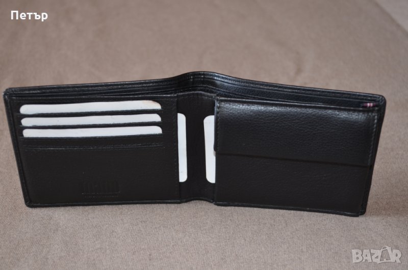 - 1 джоб за монети закопчава се с копче. Надпис на фирмата отпред на портфейла и пришито лого от вътрешната страна в отделението за
