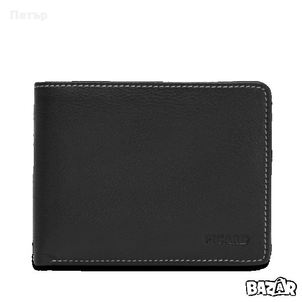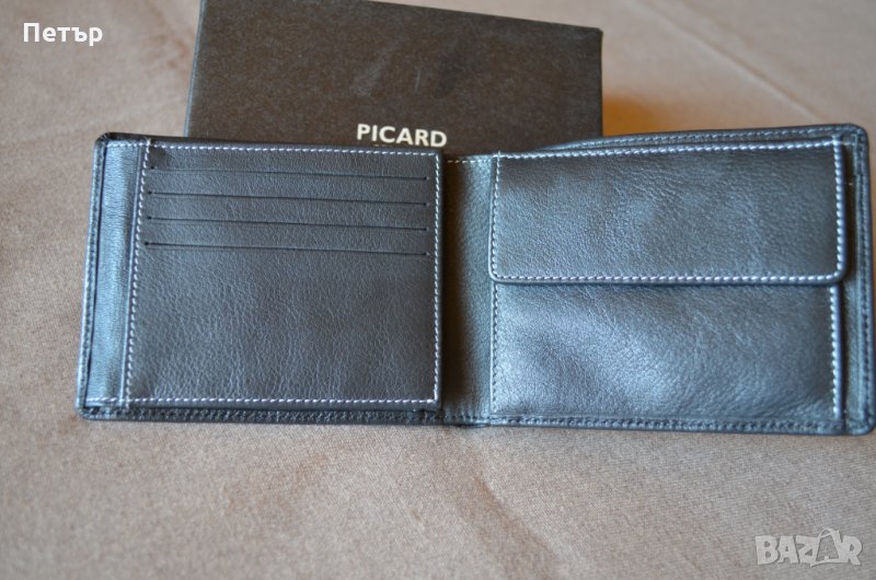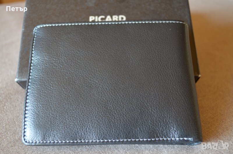 Портфейла е чисто нов и в оригиналната си кутия и е на Германската фирма Picard е и е от колекцията "Diego" с номер на модела 8444. Хоризонтален тип е и е изработен от мека "черна" естествена кожа и