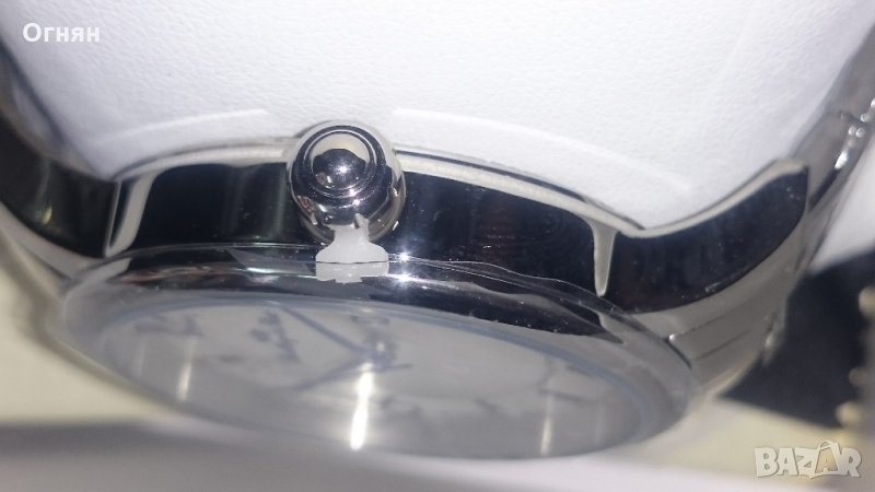 Бял циферблат със сини индекси , корпус и верижка от