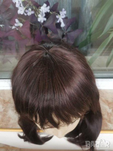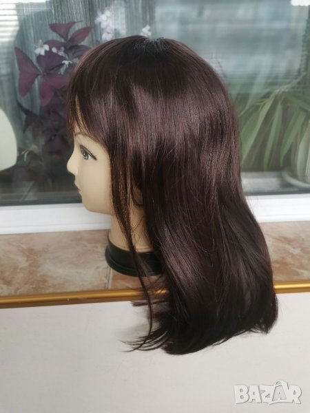 Нова средна дължина тъмно кестенява перука с бретон - 45 см - мод.94 → Обява 23020615