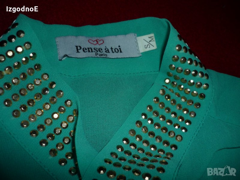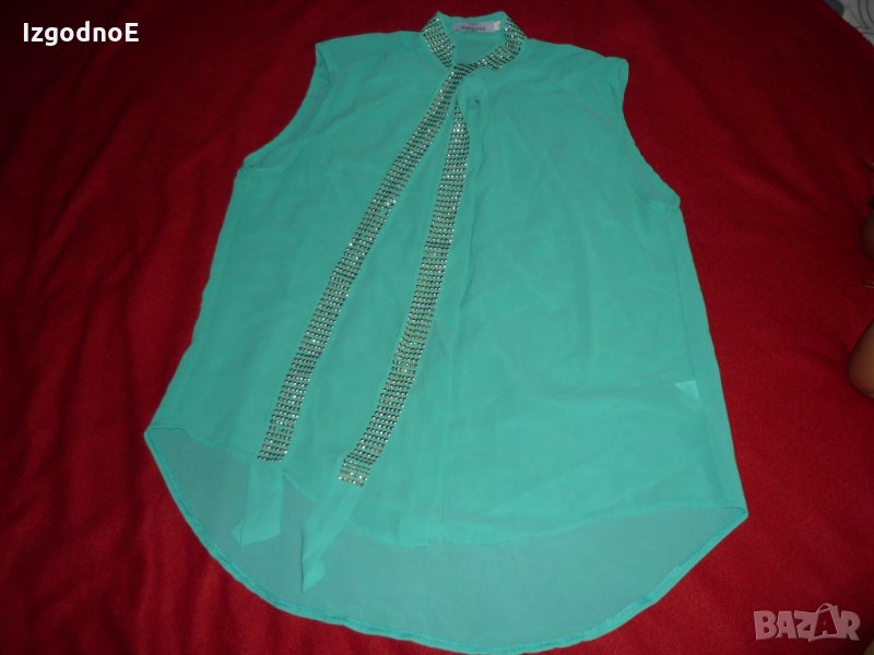 Уникален, разкошен топ от шифон с капси - цвят мента → Обява 23026960