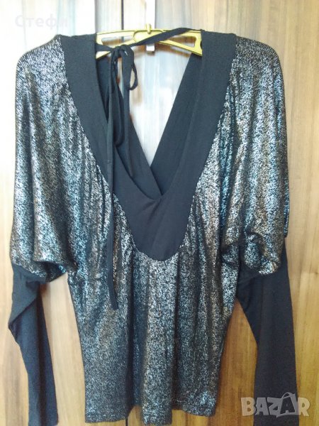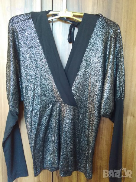 Черна блуза лъскава произход България 95% полиестер 5% еластан цена 6€