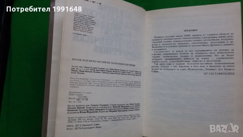 българско-английски политехнически речник“ – авторски колектив: инж. Симеон