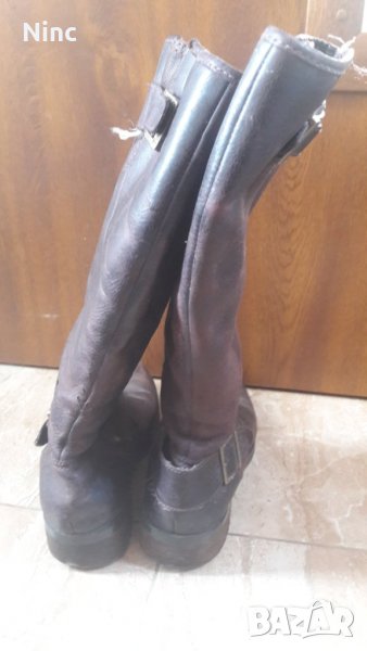 Ботушите са ориг.Високи са 39 см.Прасеца е 39 см.Токата може да се носи отпред или отзад зад петата.Подметките са започнали да се протриват.Стелката е 25см.Цвета е тъмно кафяв.