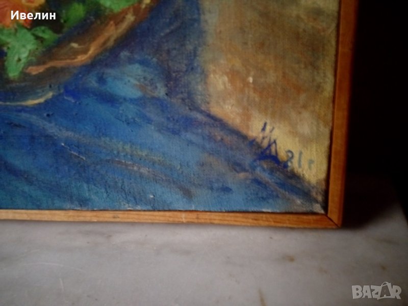картина-цветя.масло на платно,подписана,датирана в рамка с размери 47см/47см.