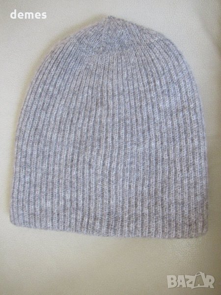 Сива машинно плетена вълнена шапка, 100% вълна, Монголия → Обява 23043970