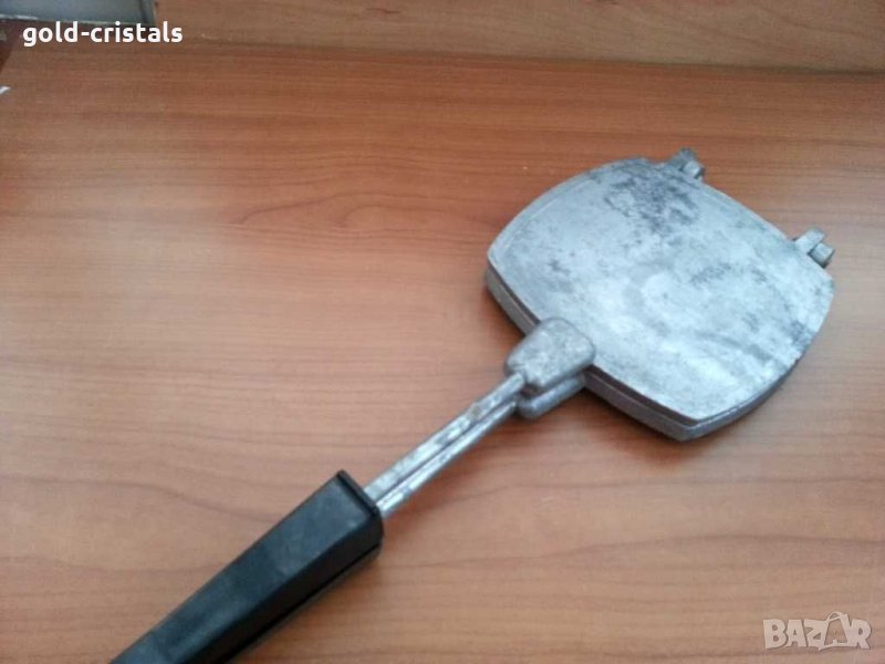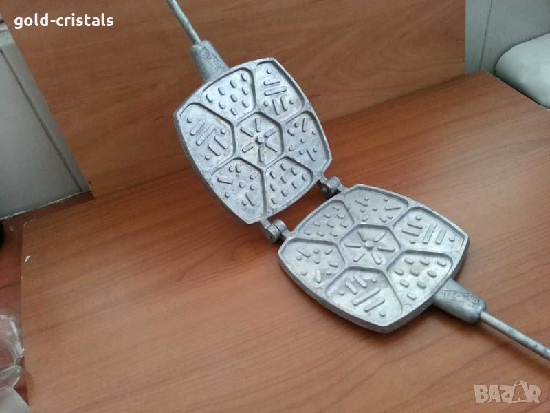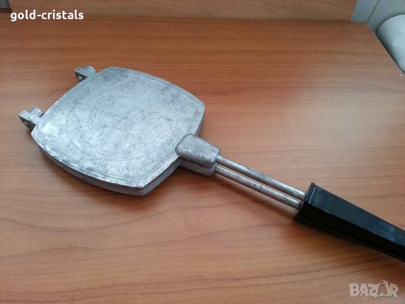Ретро двоен сач калъп форма преса за гофрети палачинки вафлени кори за всякакъв вид котлони може да се ползва и от двете страни или само от едната неизползван ретро арт декор винтидж колекция стари старинни антикварни предмети обзавеждане за дома и семейството подходящи за подарък за ценители и колекционери