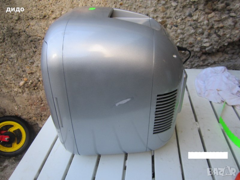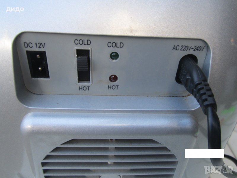 Малка хладилна чанта с размери вътре 20/24см.,дълбочина 15см.Чантата има функция да охлажда и затопля.Може да работи на 220 волта и на 12 волта,но зарядното на 12 волта липсва, не е проблем да се закупи от Левчетата,тъй като е със стандартна букса.