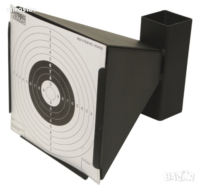 Мощност: 2,8 Джаула. Скорост: 125 м/с. Материал: Метал и пластмаса.2.Лазарен прицел с пикатини монтаж за уивър база. Материал: Метал. Тегло: 43 грама. 3.Метален фуниен държач за мишени. В комплект с 10 броя хартиени мишени. Подходящ за