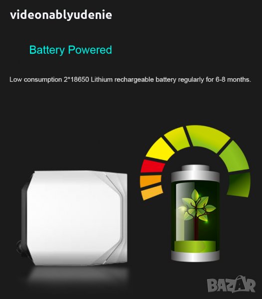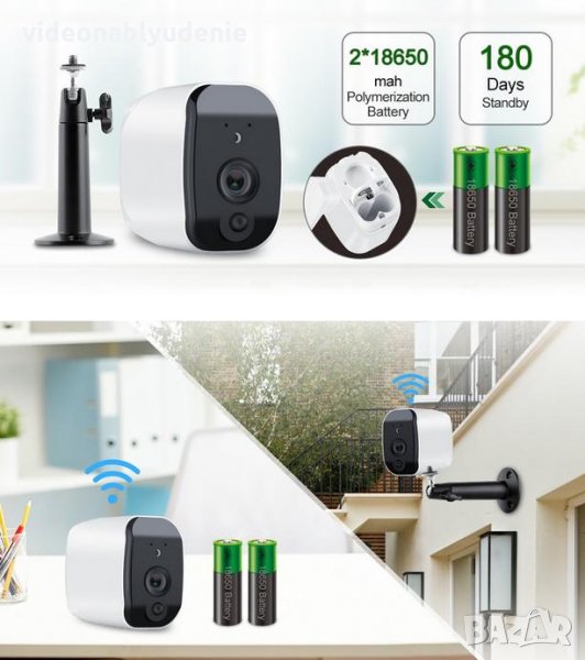 Без допълнително окабеляване, чрез захранване от ултра мощните презареждаеми модел 18650 батерии и безжичната Wi-Fi връзка, тази камерата e подходяща за инсталация и монтаж навсякъде във вашия дом, градина, офис, магазин или друг обект.