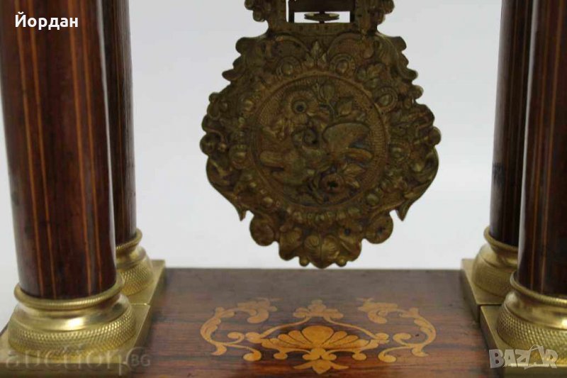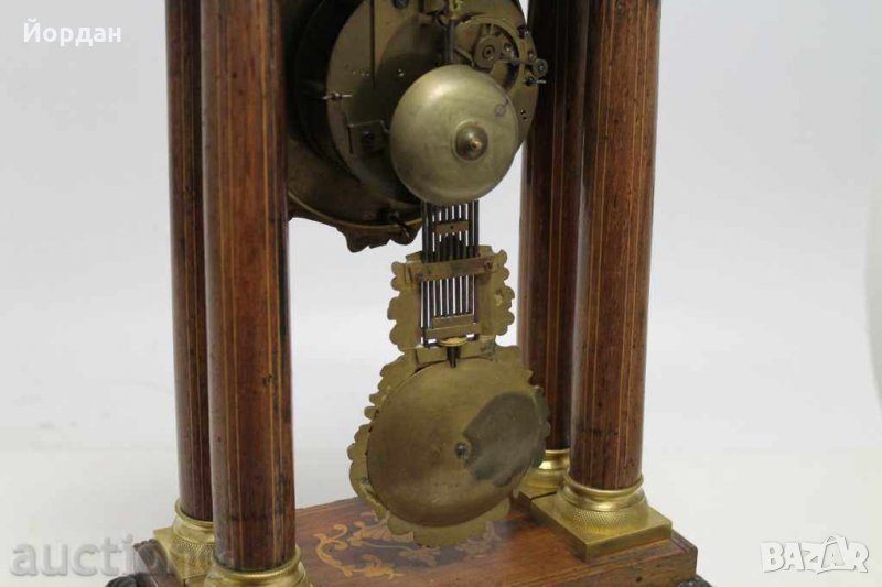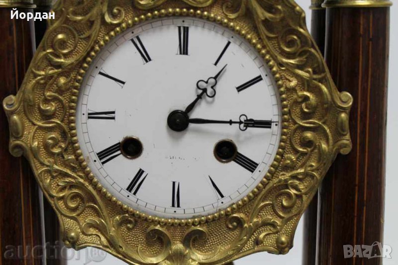 Френски каминен портален часовник, дърво с интарзия
