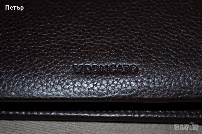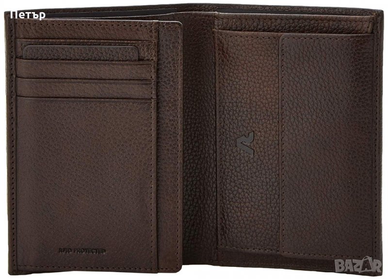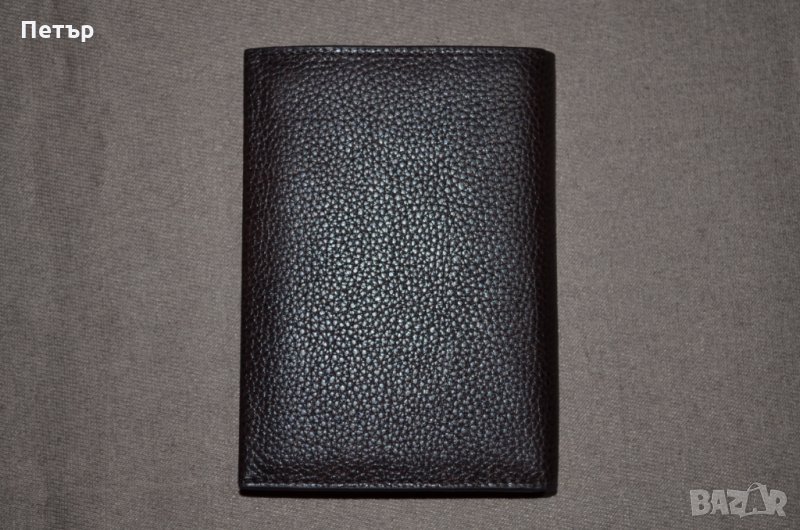 карти. Портфейла е изработен от зърнеста "тъмнокафява" естествена кожа с