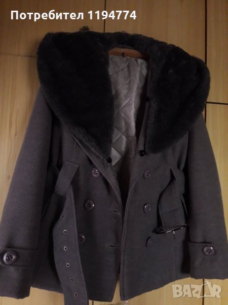 Вълнен кашмир. Дебела капитонирана подплата. Пуха може да се сваля. Подходящо за студените зимни дни. Слагано е само веднъж, но ми е голямо. Базовата му стойност беше 95 лв.