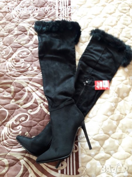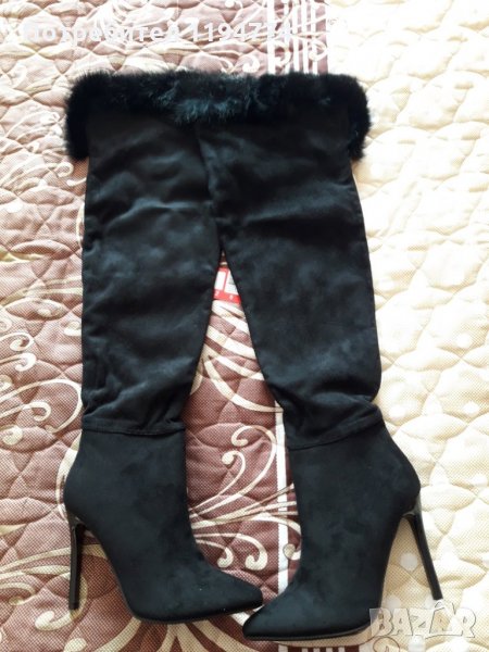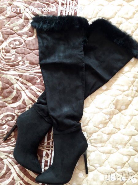 Стилни ботуши над коляното. Стелка 23 см, ток 10 см. Естествен пух. Намалени от 130 на 79 лв.