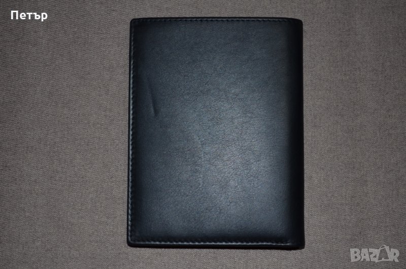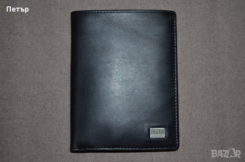 Портфейла е чисто и в оригиналната си кутия. На Германската фирма "Mano 1919" е и е от колекцията LINEA с номер на модела " M15808". Вертикален тип е и е изработен от "черна" естествена кожа. Портфейлът има общо: