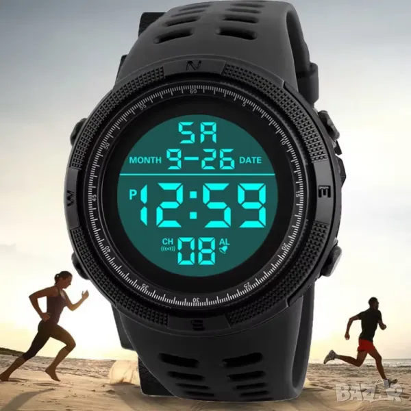 Нов спортен часовник хронометър и други функции черен 48 мм → Обява 23119195