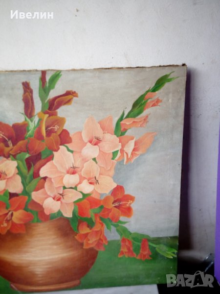 стара картина-цветя.масло на платно,подписана на подрамка с размери 61см/78см.