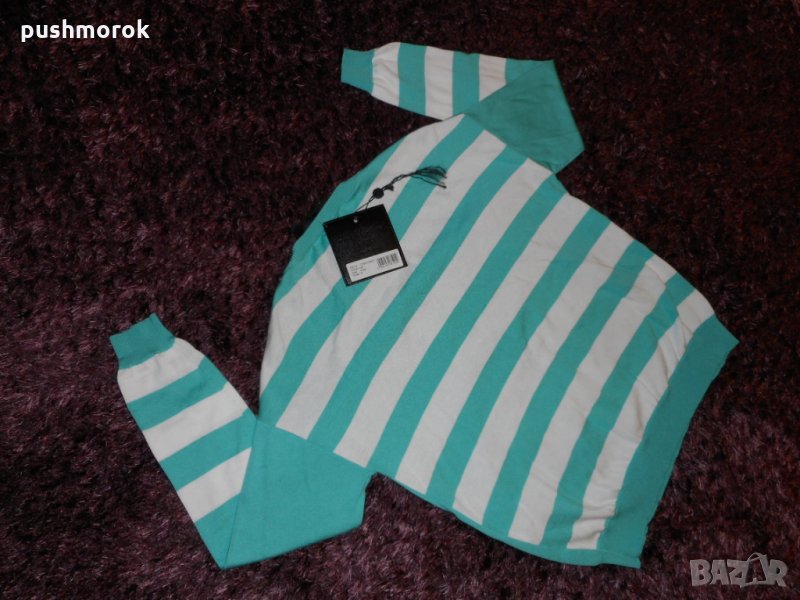 подмишници – 52 см., ръкави 52 см. Пуловера се носи спокойно и от номерация М