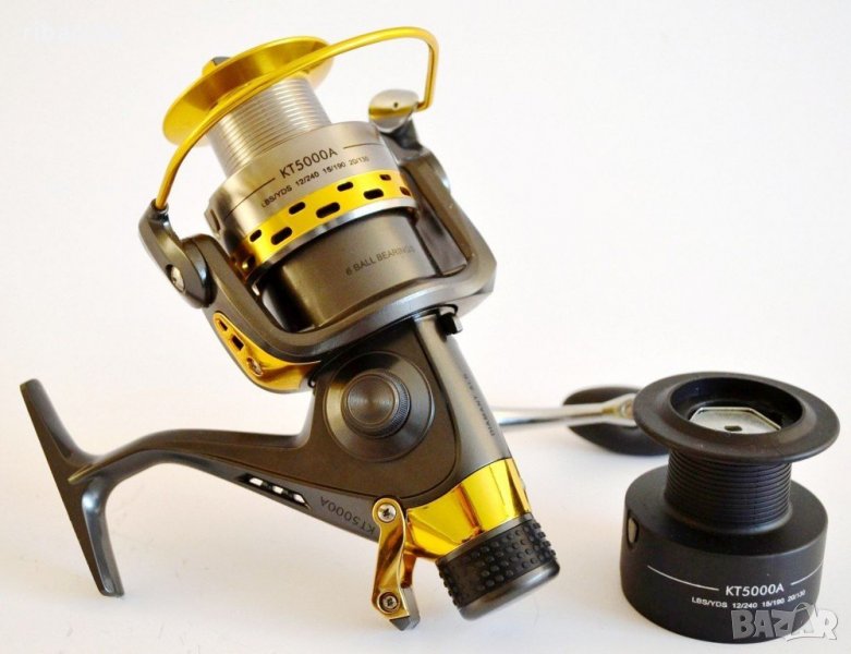 Нови ,мощни и здрави макари ,с байт-рънър система ,надежден двоен аванс ,конструирана за среден и тежък риболов на дъно и фидер-риболов ,с основна метална шпула ,и резервна графитна шпула