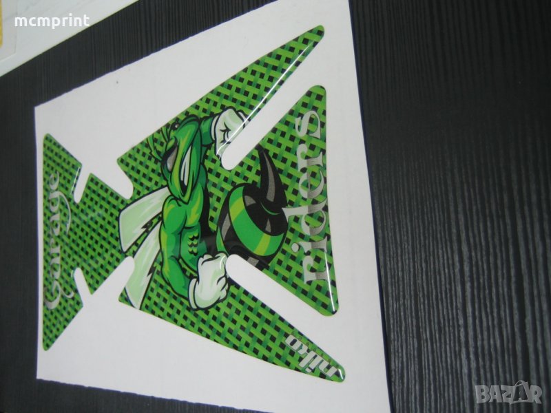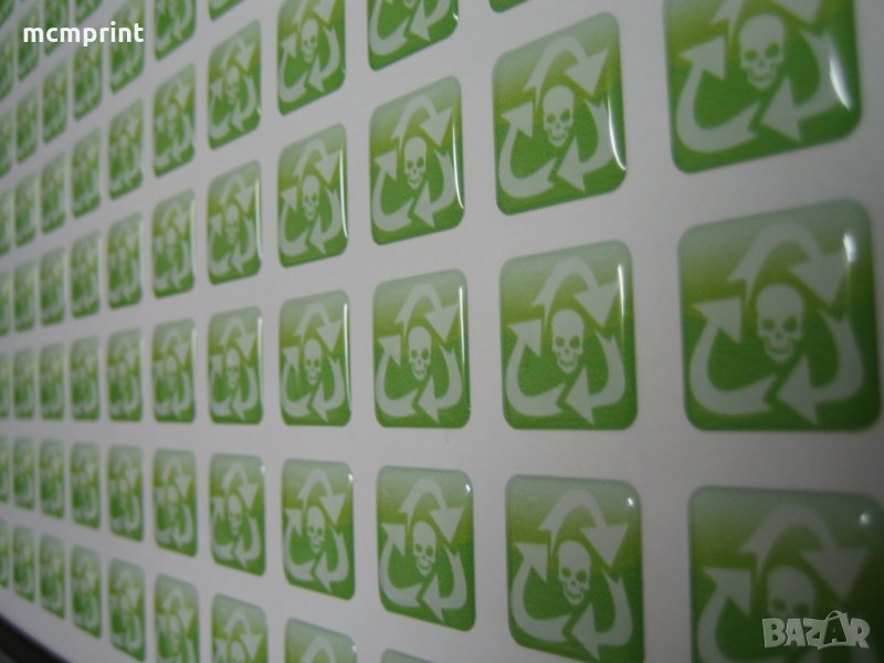 Новата технология и ОРИГИНАЛНИТЕ ИТАЛИАНСКИ ПОЛИМЕРИ, които използваме ни позволява да изработваме ефектни обемни стикери с триизмерно кристално покритие с 8 (осем) години гаранция за гъвкавост и прозрачност. Залепват идеално върху всякаква повърхност. Могат да бъдат в различни форми и размери без ограничение(без остри ъгли). Възможността да оцветяваме полимера ни позволява да постигнем различни допълнителни ефекти и разнообразие на приложението на обемните стикери - тунинг стикери за автомобили и мотоциклети, надписи за фирмени и работни дрехи, значки, медали и много други.