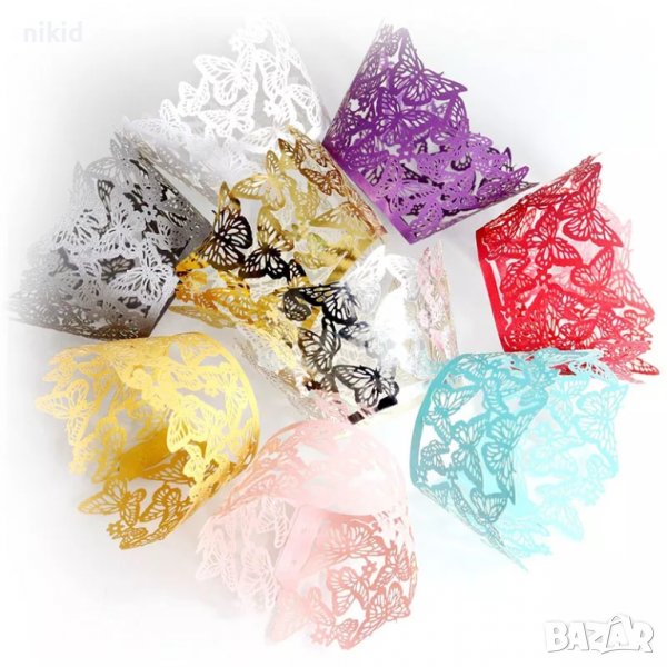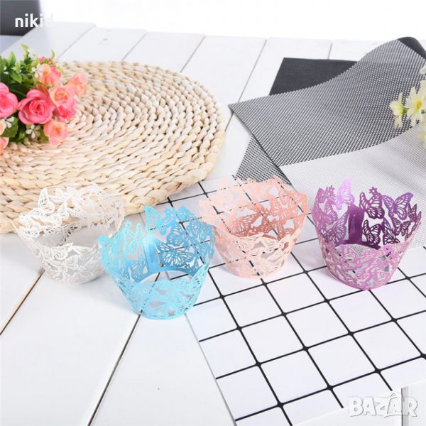 Разноцветни 12 бр пеперуди декори декорация за мъфини кексчета дантела кошнички → Обява 23132244