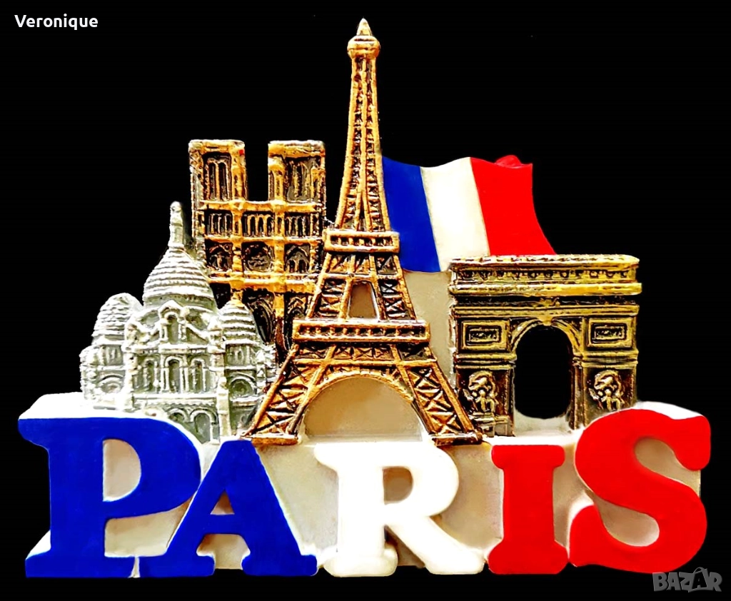 12. Магнит Париж, Франция/Айфеловата кула, Нотърдам дьо Пари, Триумфалната арка и църквата „Сакре Кьор“,7.6 x 6.1 cm – 12 лв