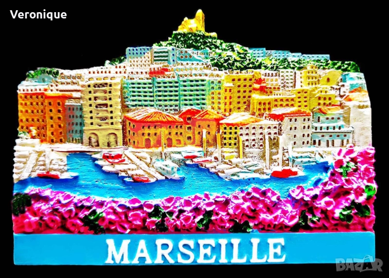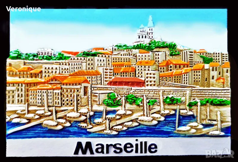 10. Магнит Марсилия,Франция/ панорамен изглед с базиликата „Нотър Дам дьо ла Гард“, 6.1 x 4.6cm -13 лв