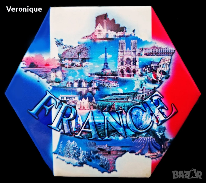 7. Магнит Франция / сборен магнит с най-известнита градове и забележителности на Франция; 6.1 х 5.3 cm – 8 лв