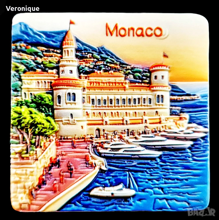 1. Магнит Монако / Дворецът на принца на Монако и яхтеното пристанище Херкулес, 6.1 x 6.1cm – 12 лв