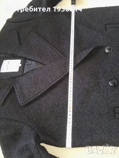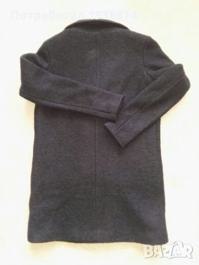 Ново тъмно синьо палто на Том Тейлър, с двуредно закопчаване.Материята е като букле. 70% полиестер/30% вълна. С хастар.