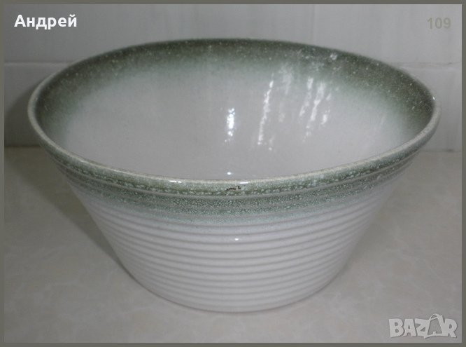Голяма керамична фруктиера-оцветена в зелено-бяло → Обява 23140866