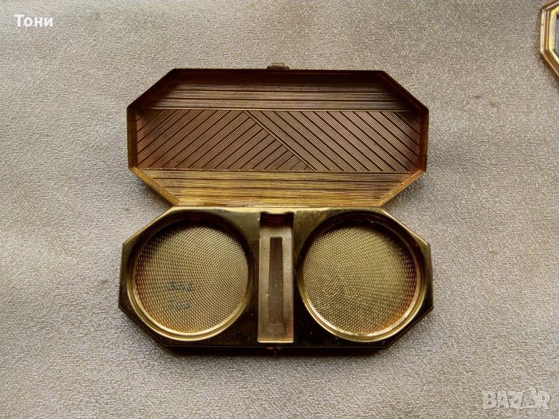 Houbigant секни ,пудриера 1900 - 1920 г в златен цвят Gold-Tone Triple Vanity Case