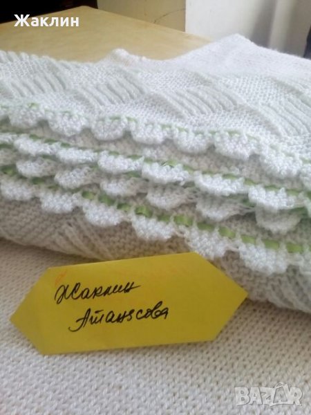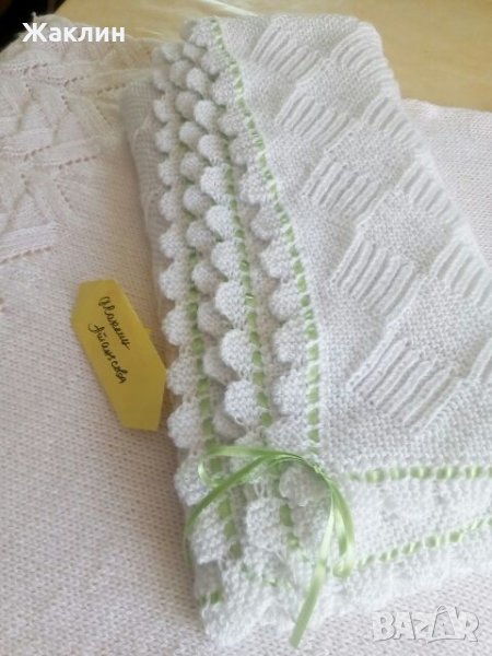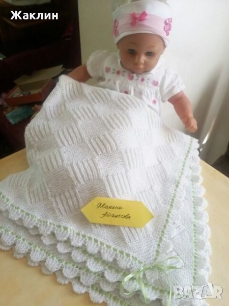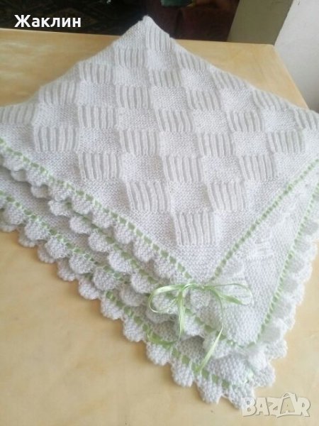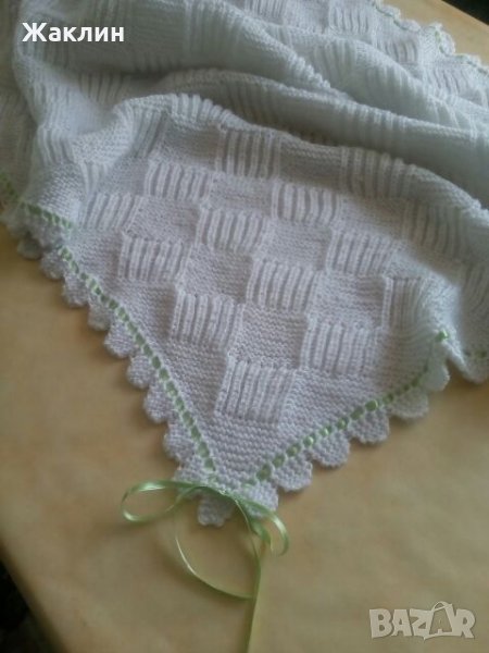 Плетена пелена "Утринна роса" за новородени бебета, 100 % акрил. Размер на пелената 94/94 см.