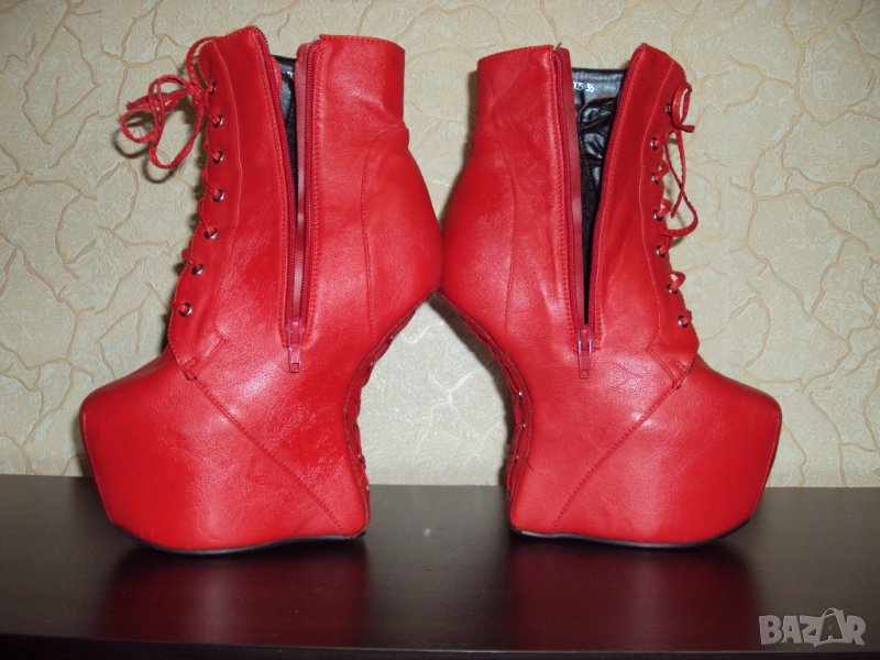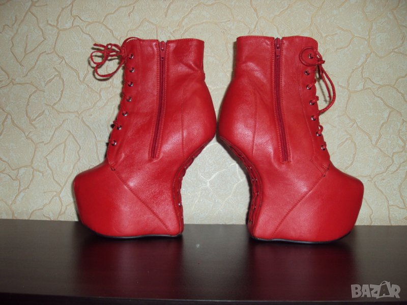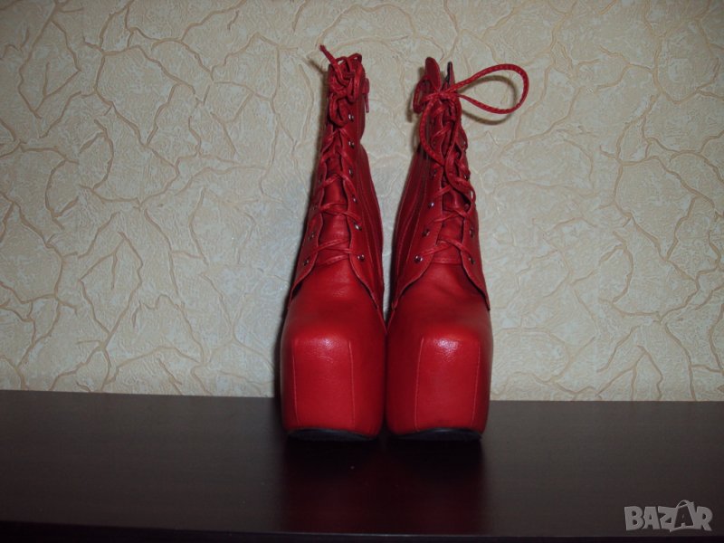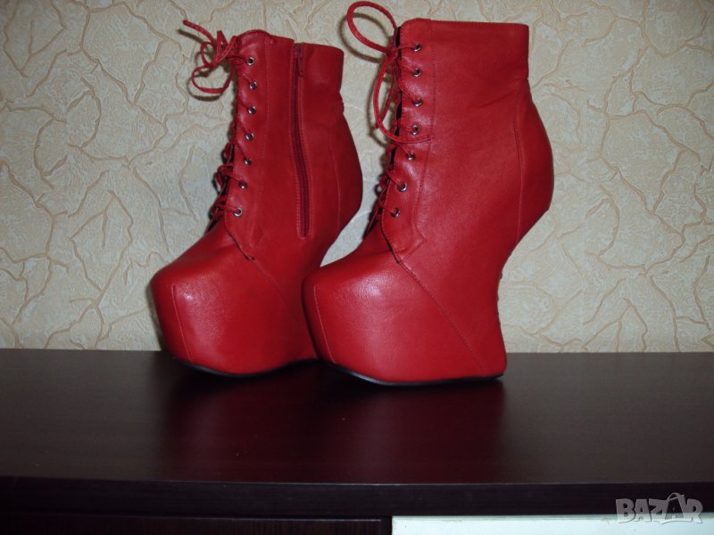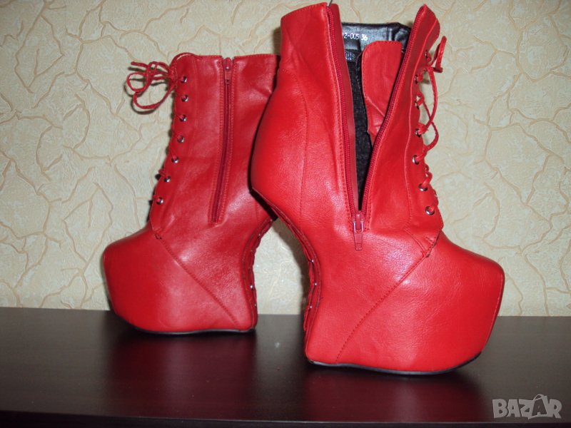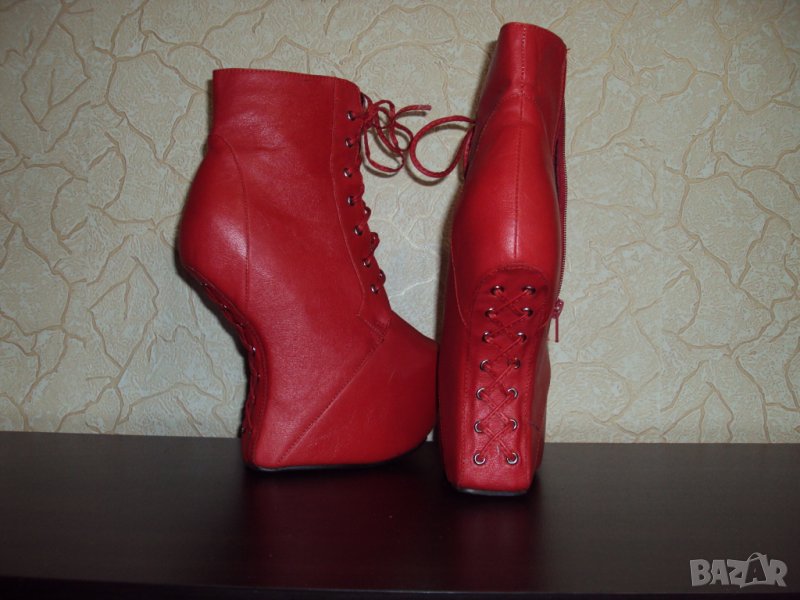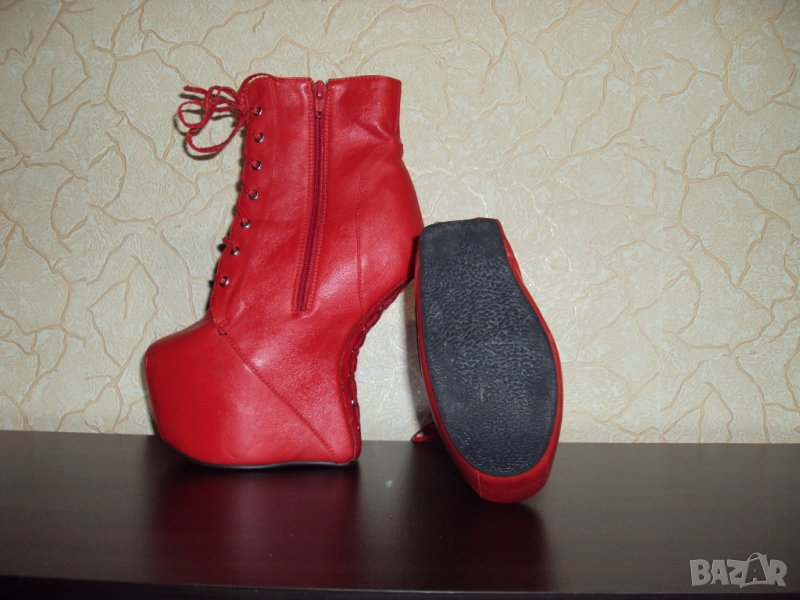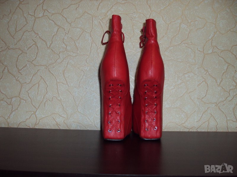 Дамски червени кожени боти на висок ток 16см-тип копито → Обява 23181646