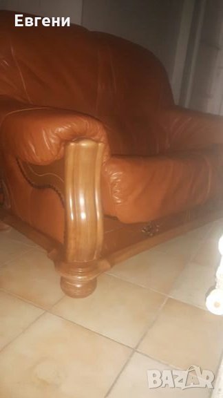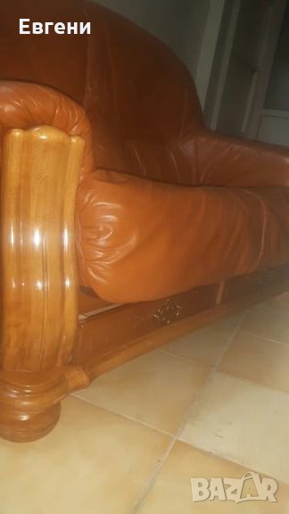 Диван естествена кожа дъбова рамка → Обява 23192661