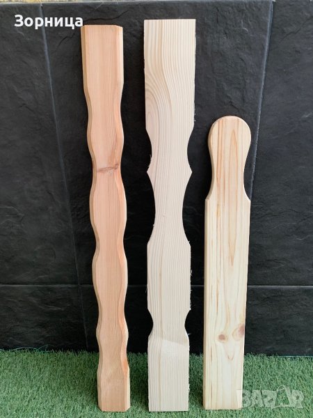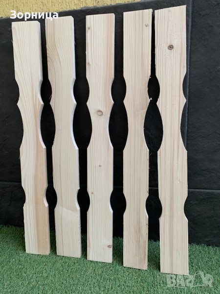Декоративни елементи за градинска оградка изработени от сух иглолистен материал.