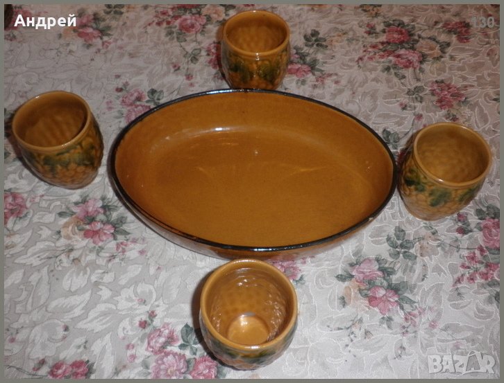 Комплект керамична тава(поднос)+красиви керамични чаши за вино → Обява 23206498