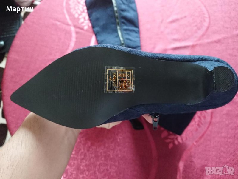Дамски велурени ботуши, тъмно сини, не са носени