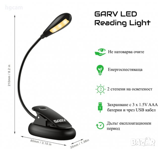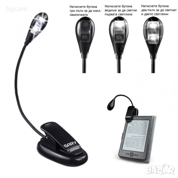 Лампичка за нощно четене GARV за eBook четци, таблети, книги и други, Черен