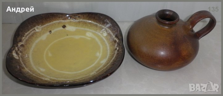 Лот:керамична чиния + керамичен свещник с дръжка → Обява 23232604