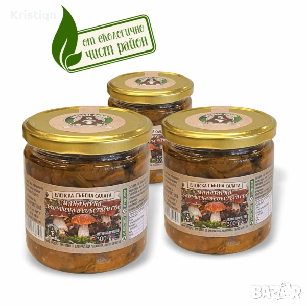 НОВО 11. Еленска гъбена салата Манатарка задушена в собствен сос - Тя е кулинарно изкушение, подходящо за добавяне върху готово месо и с допълнително запичане около 10 минути. Може да я прибавите към вашата паста, гарнитура или пица. Подходяща при вегетариански начин на хранене!