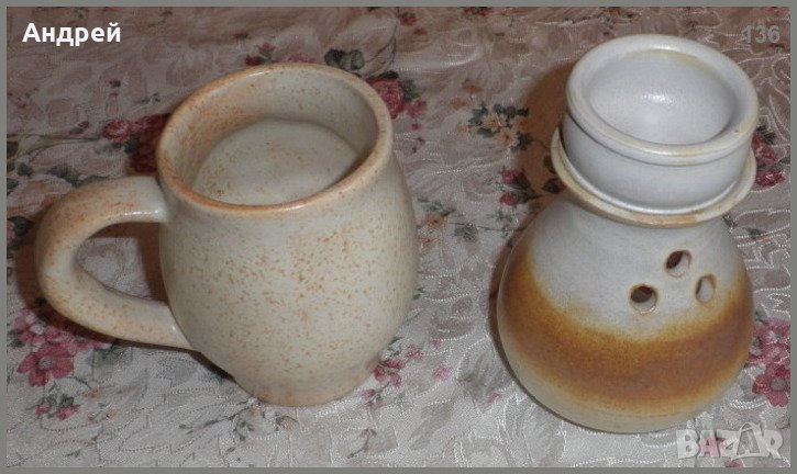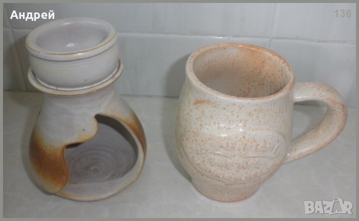 Лот: керамична халба + свещник със съд за арома терапия → Обява 23244094