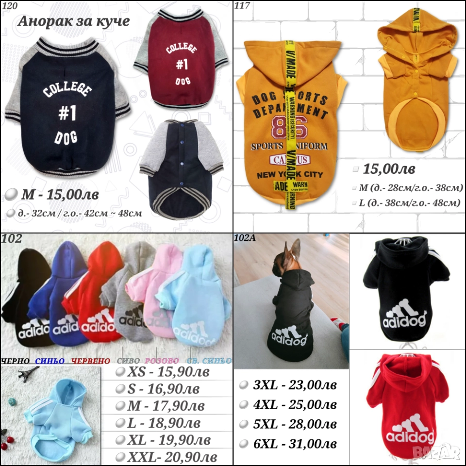 Дрехи за кучета и котки. Пуловер за куче. Суитшър, анорак и блузка за куче. Дрехи за малки кучета