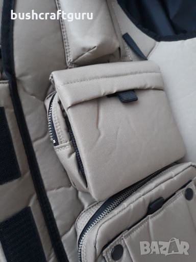 Такова нещо досега не ми бе попадало, а имам над десет подобни. Плътен, като тактическа жилетка, но без моле система и с постоянно прикачени джобове. За съжаление героичните ми опити да се напъхам в него останаха без резултат.