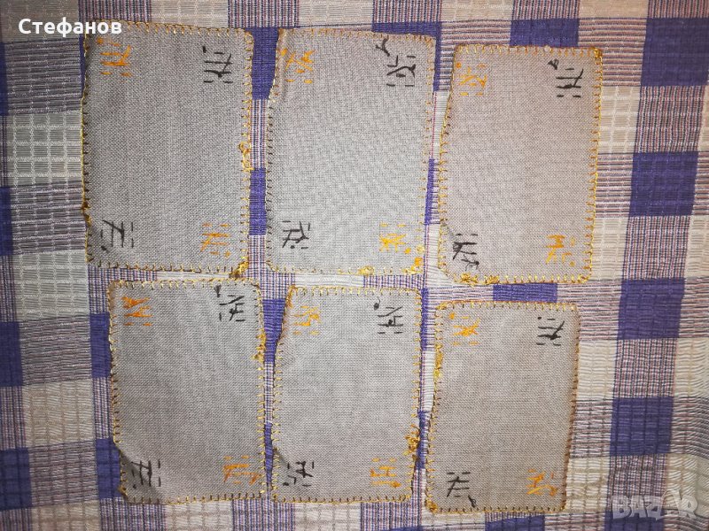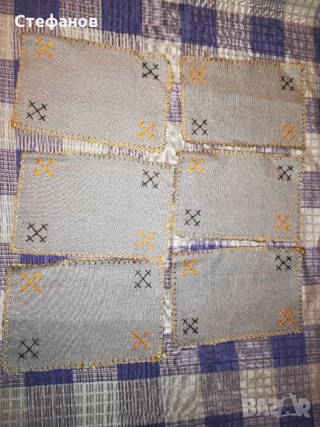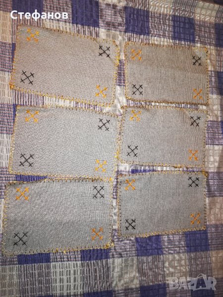 Бродирани каренца подложки за хранене и сервиране на кафе. Не са използвани. Подарени. Вижда се вида им и от двете страни като изработване. Бродирани ръчно върху канала и отстрани обкантени. Размери 19 см. На 11 см. 6 броя са на тази цена.